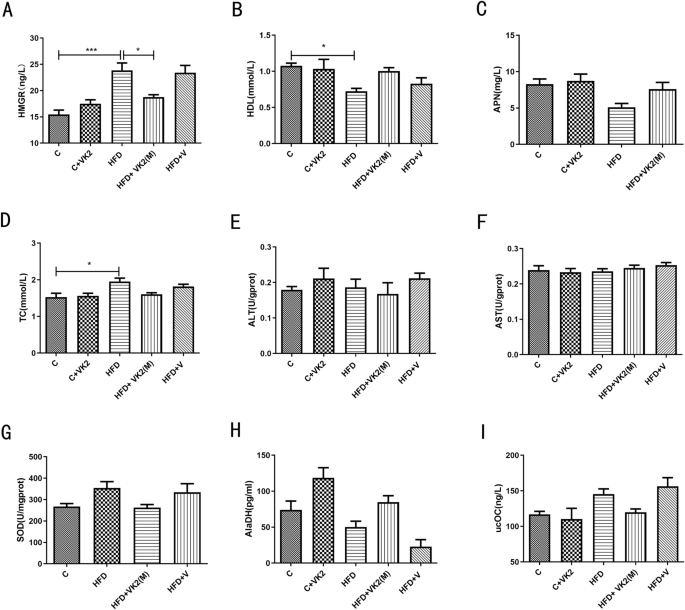 - HFD + VK2(L):高脂飲食 + 0.1 mg/kg 維生素 K2 組